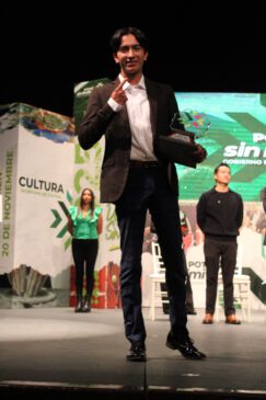 San Luis Potosí S.L.P. A 21 de Noviembre del 2025.- En ceremonia solemne en el teatro de la paz se llevó a cabo la entrega anual de los premios a lo más destacado del deporte en San Luis Potosí, el piloto de autos fórmula Ricardo Sánchez, recibió de manos del director del Instituto Potosino del deporte Francisco Javier Serrano Altuzar, el premio al mérito deportivo por su destacada actuación en la temporada 2024 de la Súper Copa, serial nacional de automovilismo, donde se levantó como campeón de la categoría PRO 2 de la Fórmula 5.