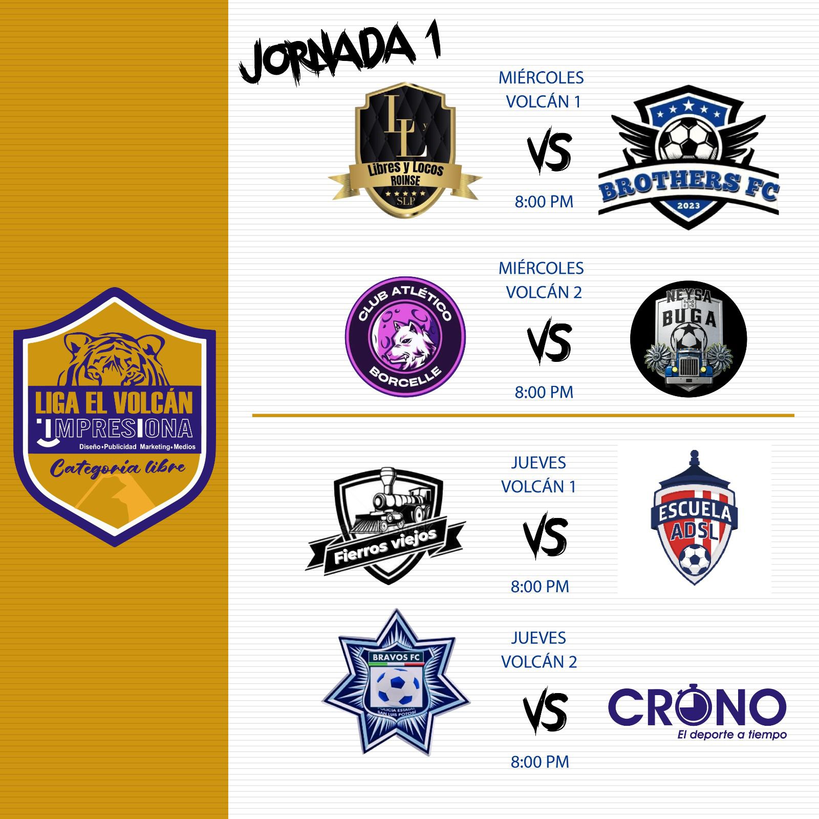 EL GRUPO B CON: FIERROS VIEJOS, CRONO, BRAVOS FC Y ESCUELA ADSL